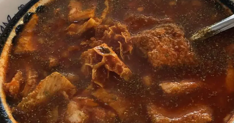La preparación y nombre de este platillo varía según la región donde se consuma, pero siempre es un caldo con trozos de panza de res.