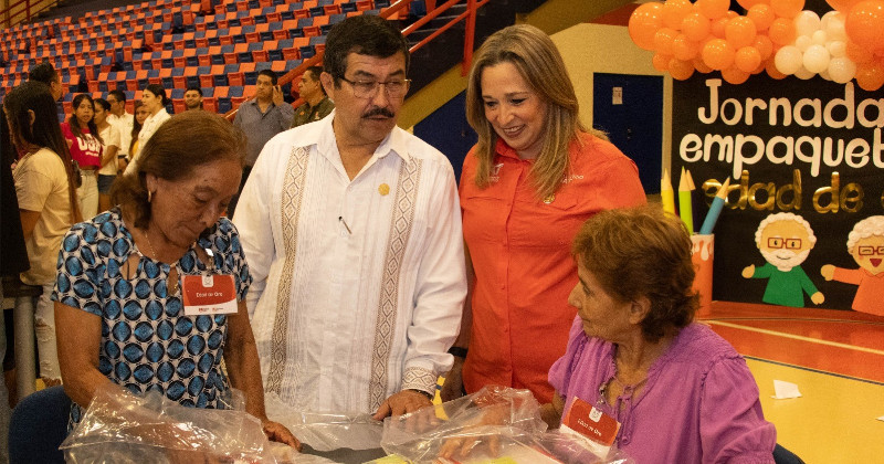 Con gran entusiasmo, los abuelitos del club del adulto mayor del COMASS-UAT convivieron en esta dinámica y compartieron con el rector Dámaso Anaya y su esposa Isolda Rendón esta jornada de empaquetado de útiles escolares recolectados, como cuadernos, lápices de grafito, lápices de colores, plumas, marcatextos, tijeras, estuches de geometría, pegamentos, borradores, sacapuntas, loncheras, mochilas y lapiceras.