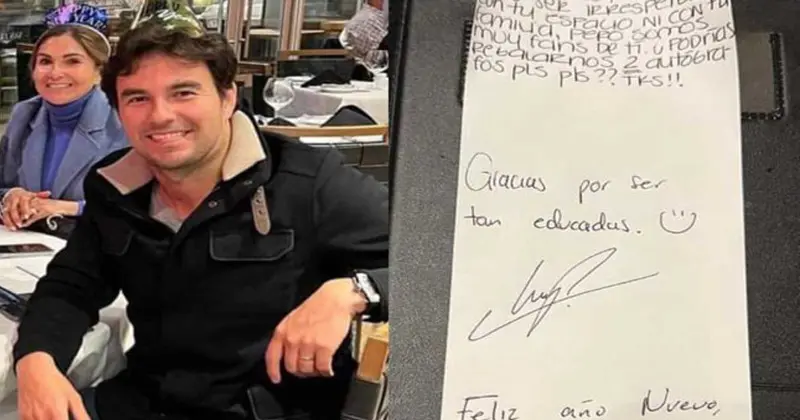 Hola ‘Checo’, no queremos ser irrespetuosas con tu espacio ni con tu familia, pero somos muy fans de ti. ¿Podrías regalarnos dos autógrafos?”, escribieron las meseras detrás de la nota en la que venía la cuenta de lo consumido por el piloto tapatío.