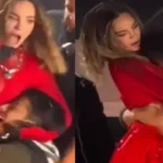 En Tiktok circuló un video donde se ve a Belinda en el concierto de la Feria de las Fresas, junto a ella un fanático la abrazaba con entusiasmo. Sin embargo, de un momento a otro, el sujeto cayó al piso y sujetó las piernas con la cantante con fuerza.