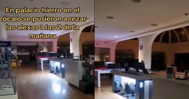 El clip, que de hecho resulta espeluznante, fue captado en una tienda departamental ubicada en el centro histórico de la Ciudad de México en donde, aparentemente un guardia se seguridad grabó el momento en el que varios dispositivos Alexa rezan el rosario de forma coordinada.
