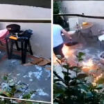 En el video, que se difundió en redes sociales por el usuario “México Mágico” y fue captado por las cámaras de seguridad del lugar, se observa el momento en el que un hombre de playera blanca prende un poco de carbón en el asador y para al tratar de intensificar el fuego vierte gasolina usando un pequeño tanque de plástico de color rojo, sin embargo, las llamas alcanzan el recipiente provocando que el fuego lo cubra por completo y desatando pánico en el sujeto.