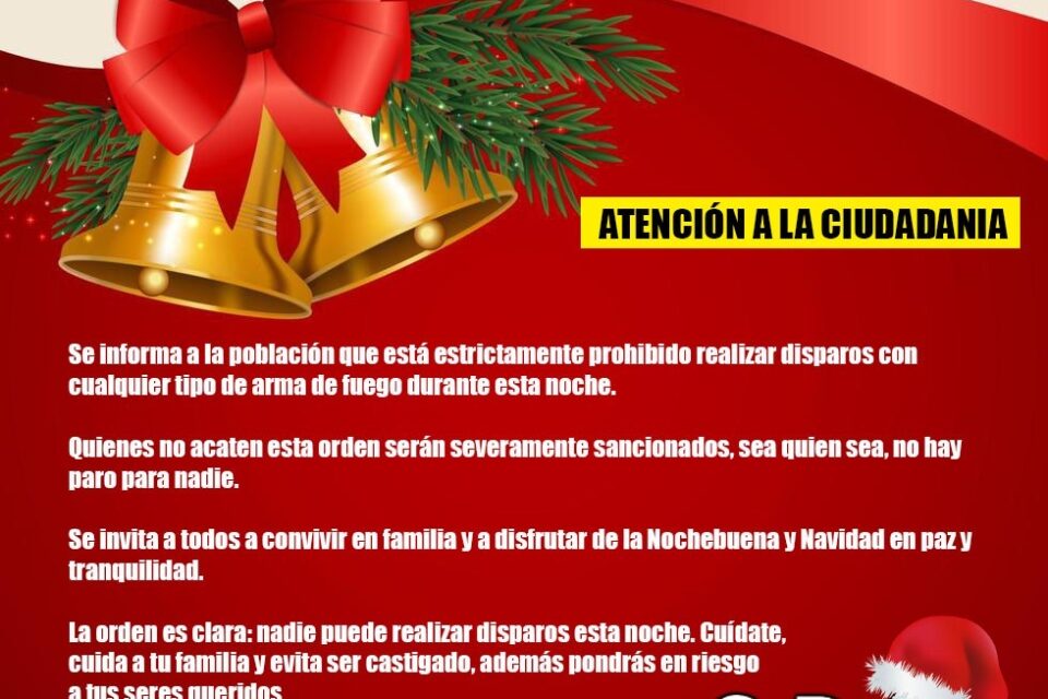 CDN exhorta a no disparar al aire durante la noche de celebración de nochebuena y Navidad