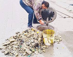En diferentes sectores de la ciudad, las cuadrillas de Comapa que limpian los drenajes sanitarios han extraído grandes cantidades de grasa dura del interior de las redes de alcantarillado.