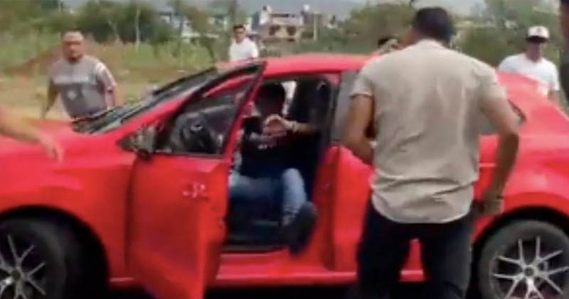 Incluso se puede ver cómo un joven tomó un bat o palo para empezar a golpear su automóvil con él; al lugar se acercaron alrededor de otros cinco sujetos quienes rodearon al agresor.
