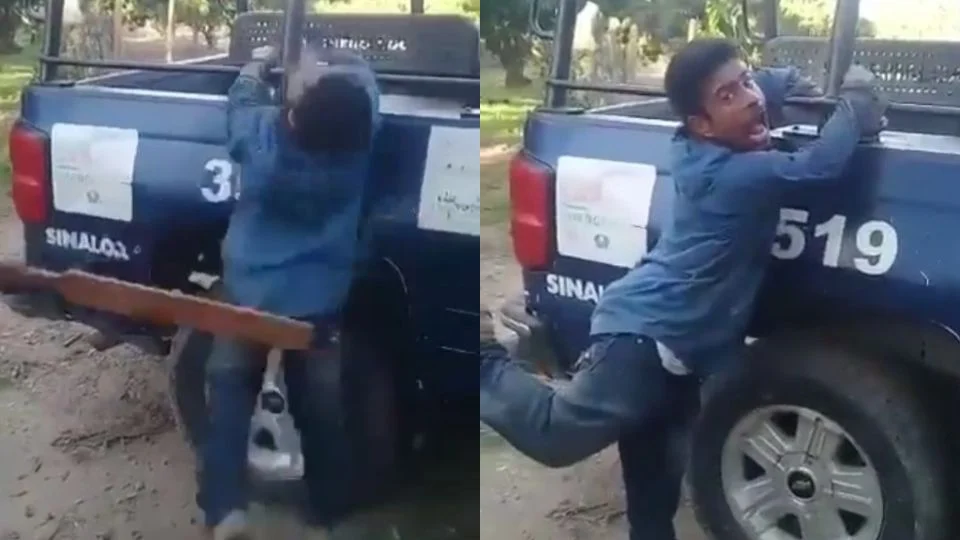 Fue a través de las plataformas digitales donde se observa al hombre esposado en la estructura metálica de la patrulla.