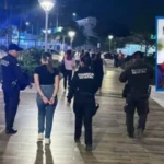 Poco después, elementos de la Guardia Estatal llegaron al lugar y arrestaron a Melanie, quien fue esposada y trasladada a la barandilla municipal, ubicada frente al parque Méndez.