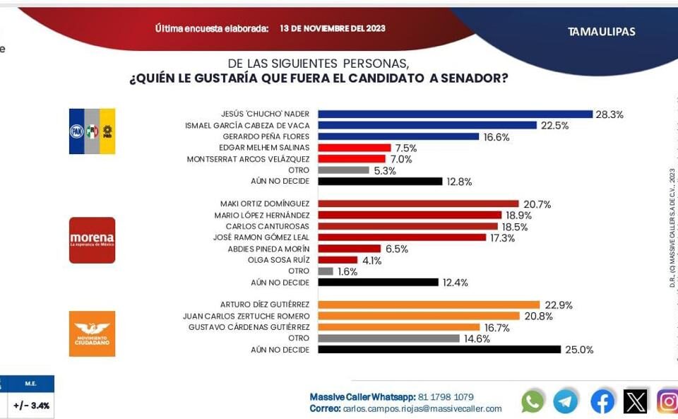 La exalcaldesa de Reynosa tiene una marcada preferencia entre los votantes, de acuerdo al sondeo realizado por Massive Caller, que revela un curso ascendente entre los prospectos para buscar el triunfo en la contienda electoral del 2024.