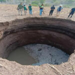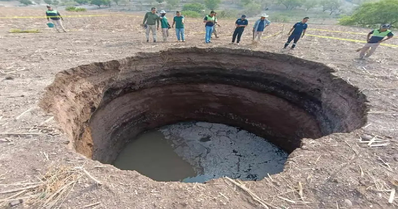 Al lugar llegó personal de la Secretaría de Protección Civil , quienes encontraron un hundimiento en un terreno de cultivo de maíz, con una profundidad de 10 metros y un diámetro de 7.5 metros.