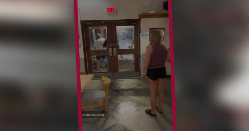 Imágenes dramáticas capturadas en videos que se han compartido en redes sociales muestran una gran ola golpeando el comedor del ejército, derribando puertas y arrastrando a personas, seguida por una ola aún más alta. Las escenas, dignas de una película, incluyen el apagón repentino de luces en medio del caos.