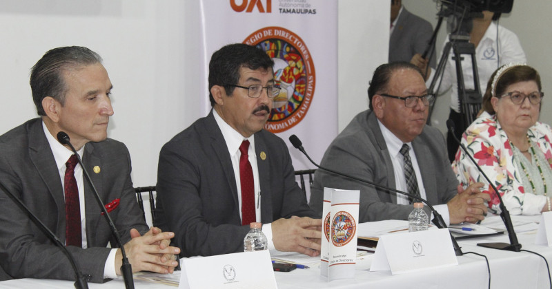 CIUDAD VICTORIA, TAMAULIPAS.- Al presidir en el Campus Tampico la tercera reunión ordinaria del Colegio de Directores de la Universidad Autónoma de Tamaulipas (UAT), el rector Dámaso Leonardo Anaya Alvarado destacó la importancia de trabajar en este cuerpo colegiado las mejores propuestas que permitan seguir avanzando en la construcción del nuevo plan de desarrollo institucional de la máxima casa de estudios del estado.
