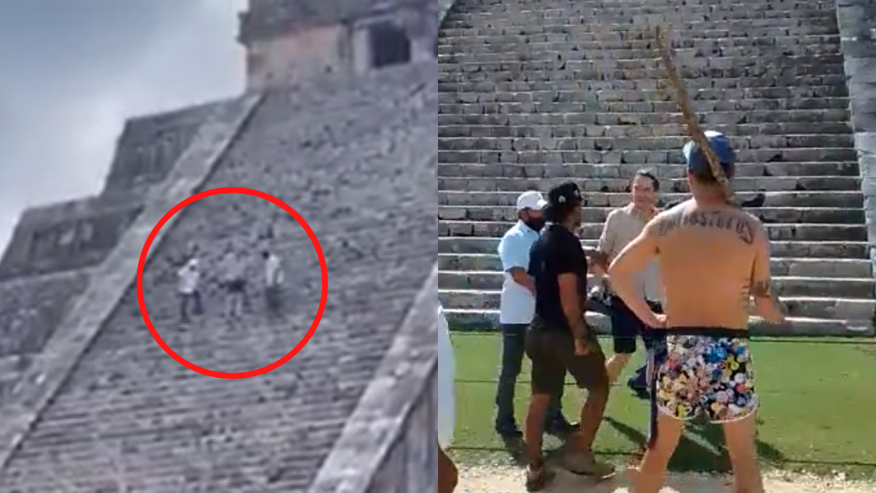 Un extranjero que se encontraba en Yucatán ignoró las prohibiciones y subió a la pirámide de Chichén Itzá en Yucatán y al ser bajado por las autoridades fue agredido por presentes en el lugar.