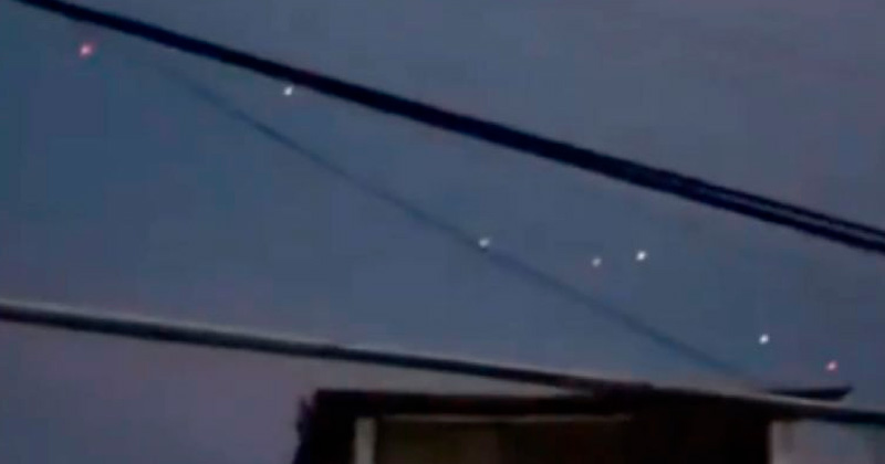 Las imágenes grabadas por el celular de una persona muestran al menos ocho OVNIS moviéndose en el cielo nocturno, mientras se escucha a lo lejos ladrar a un perro.