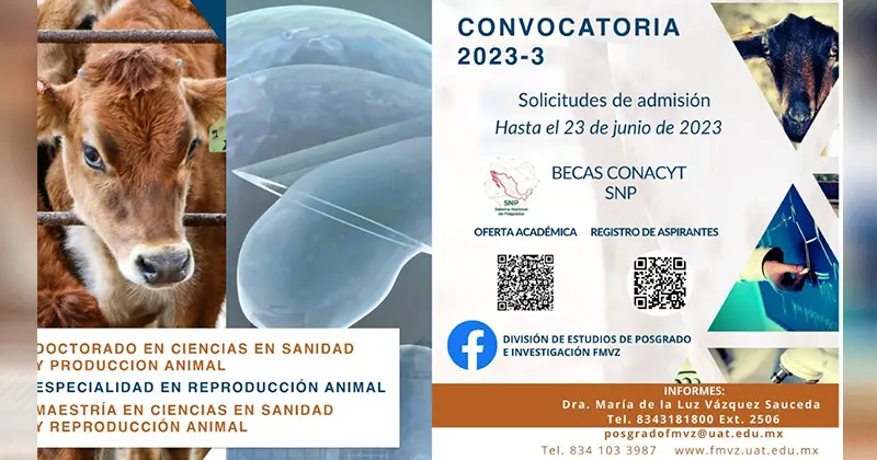 En la convocatoria de posgrados, la FMVZ UAT anuncia también la apertura del Doctorado en Una Sola Salud, que es de reciente creación y está certificado por la Universidad de Arizona, Estados Unidos.