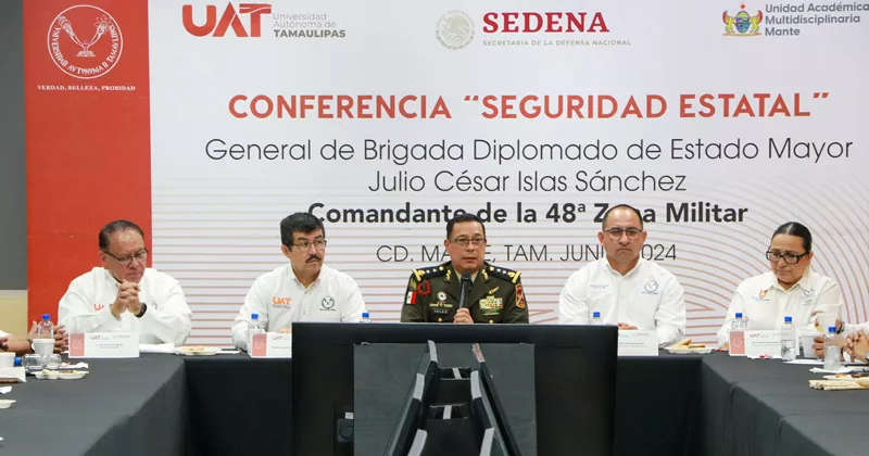 CIUDAD VICTORIA, TAM.- La Universidad Autónoma de Tamaulipas (UAT) organizó una conferencia sobre las funciones y el desempeño de la Secretaría de la Defensa Nacional (SEDENA), en el marco de la Reunión de Seguridad que se realizó en la Unidad Académica Multidisciplinaria Mante.