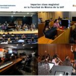 En el escenario de la sala Manuel Enríquez de este plantel universitario se contó con la participación del Mtro. David Rodríguez de la Peña, director general del Conservatorio Nacional de Música, quien impartió la clase magistral abierta para escuchar el Concierto #21 para piano y orquesta de Mozart.