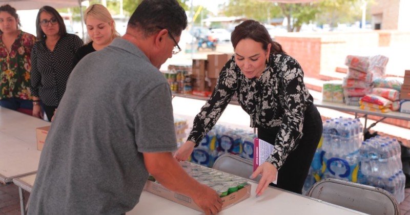 La presidenta municipal hizo un llamado a los neolaredenses a unirse a esta noble causa donando alimentos no perecederos en el Centro de Acopio que se instaló en la Explanada Esteban Baca Calderón.