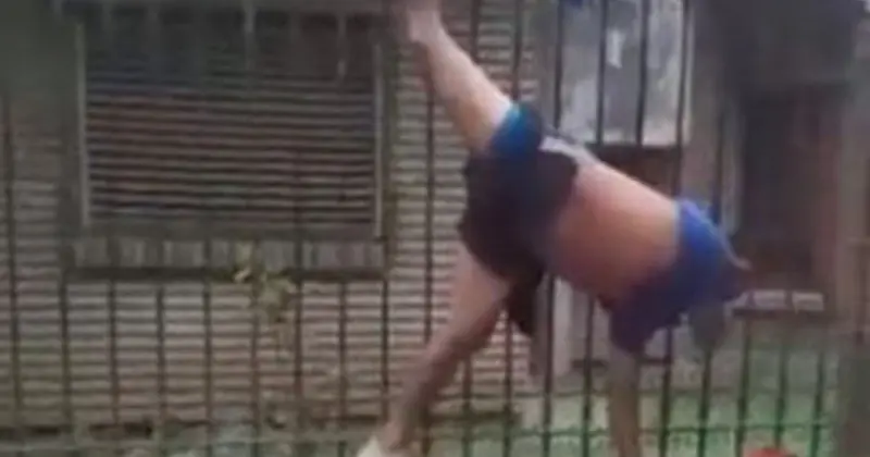 Un video de Twitter muestra al ladrón incrustado en la filosa reja luego de intentar escapar de una casa de la comunidad de Merlo, en Argentina.