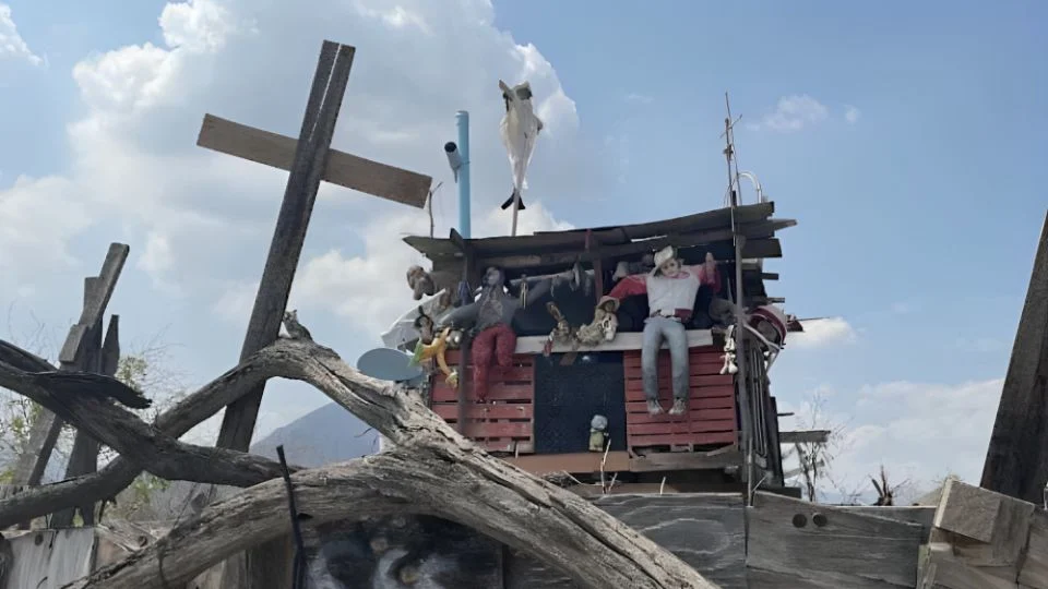 En redes sociales ha sido bautizada como “La Casa de las Muñecas”, y se encuentra sobre la carretera a rinconada, a la altura del Ejido Maravillas.