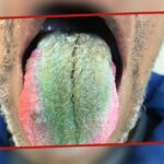 Las fotos adjuntas muestran la lengua del hombre, que está sarnosa y verde. Causada generalmente por una higiene oral deficiente, la afección, que generalmente afecta a adultos mayores de 40 años (y es más común en hombres), puede verse exacerbada por el tabaquismo, lo que hace que las bacterias y la placa se acumulen en la lengua.