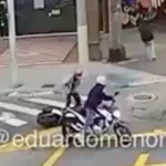 BRASIL.- Un video compartido en redes sociales muestra el incidente en el que dos individuos que se trasladaban en una motocicleta detienen su marcha a la par de otro motociclista e intentar robarle amenazándole con una arma de fuego.