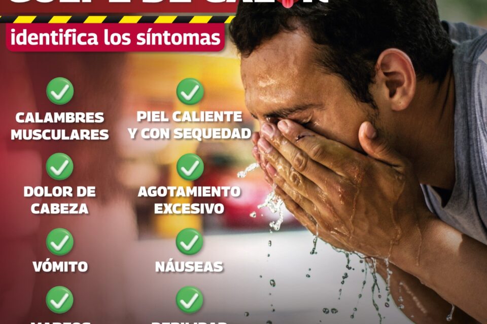 Señales que identifican la insolación: calambres musculares, piel caliente y seca; dolor de cabeza, agotamiento excesivo, vómito, náuseas, mareos y debilidad, como los más importantes y fáciles de notar.