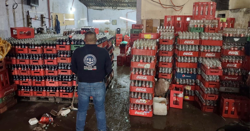 Al cumplimentar una orden de cateo, la policía de investigación aseguró 130 cajas de plástico, cada una con seis botellas de tres litros llenas de supuesto refresco de cola, y aproximadamente 797 cajas adicionales, cada una con 24 envases de 600 mililitros, listos para ser rellenados. También se encontraron cuatro paquetes de refresco, cada uno con 12 envases de vidrio.