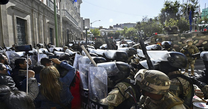 Altas fuentes de la política boliviana explicaron a LPO que “cuando el Comandante General de las Fuerzas Armadas hace una entrevista amenazando directamente a Evo y defendiendo su inhabilitación como candidato para las elecciones de 2025, se genera un fuerte movimiento interno en gabinete, resistencias, y en este momento están los militares, la mitad, casi todos acuartelados y los otros tomaron la plaza Murillo con tanques y armas”.