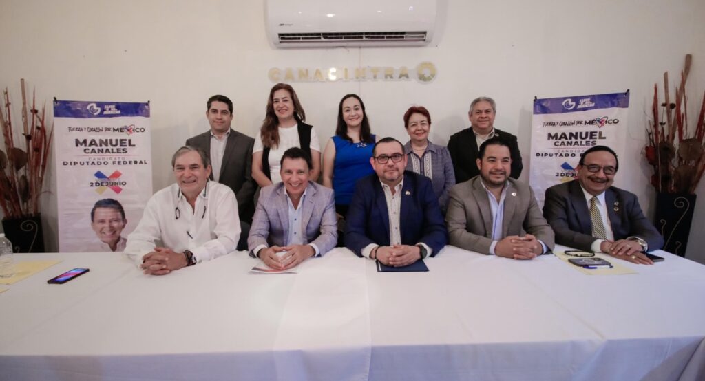 Nuevo laredo, Tamaulipas, 09 de abril de 2024 .— El presidente de la Cámara Nacional de la Industria de la Transformación (CANACINTRA) el Ing. Miguel Ángel Vázquez y la Mesa Directiva recibieron al candidato Manuel Canales Bermea, donde resaltó la importancia de este órgano para el desarrollo local y nacional.