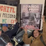 Los protestantes permanecieron varias horas frente a la sede, y ya entrada la noche, un video revela cómo la candidata, cubierta con una gorra y la cabeza baja, es escoltada por varios hombres hacia una camioneta.