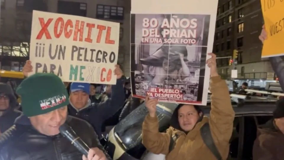 Mexicanos protestan contra Xóchitl Gálvez en Nueva York