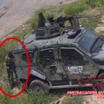 A las 14:39 horas sacan el Barret calibre .50 mm de la camioneta y lo ponen en la parte trasera del camión blindado de SEDENA.