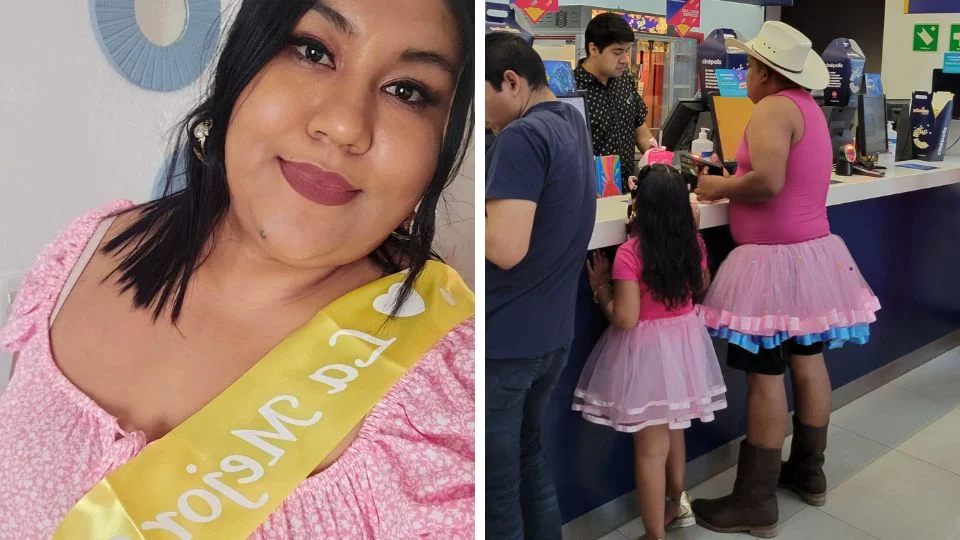 Muere esposa de hombre que se vistió de rosa para llevar a su hija al cine en Tamaulipas