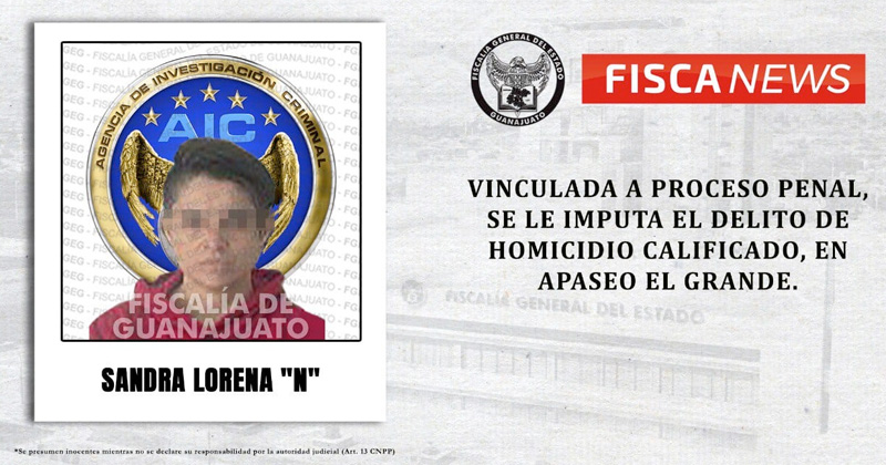 “La judicialización exitosa del caso tiene a Sandra Lorena en la cárcel, vinculada a proceso penal por su probable participación en el hecho que la ley considera como delito de homicidio calificado”, indicó la FGE.