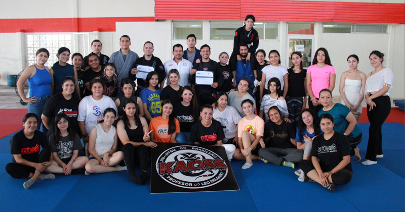 En el taller, impartido por el maestro en jiu-jitsu brasileño Leonardo Delgado, estuvieron presentes la C.P. Imelda Sustaita de Mendoza, el Director de la FDCSV, Dr. Edy Izaguirre Treviño y su esposa la Mtra. Naty Bazán.