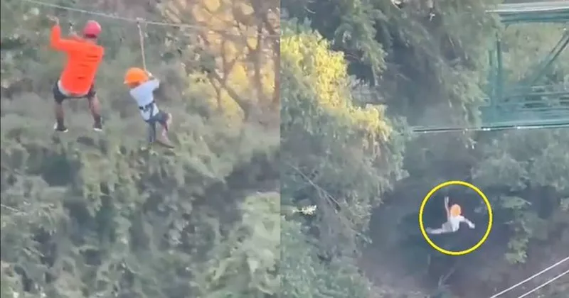 Justo a escasos metros de llegar a una plataforma que comprende el trayecto de la tirolesa, se observa cómo el niño se desata del cable que lo sujetaba a la tirolesa y cae al vacío desde los 12 metros de altura como reportaron en las redes sociales.