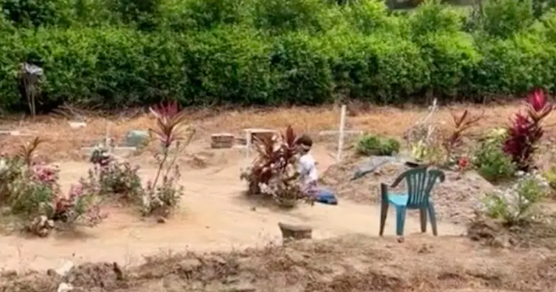 Niño va diario a la tumba de su mamá para hacer la tarea