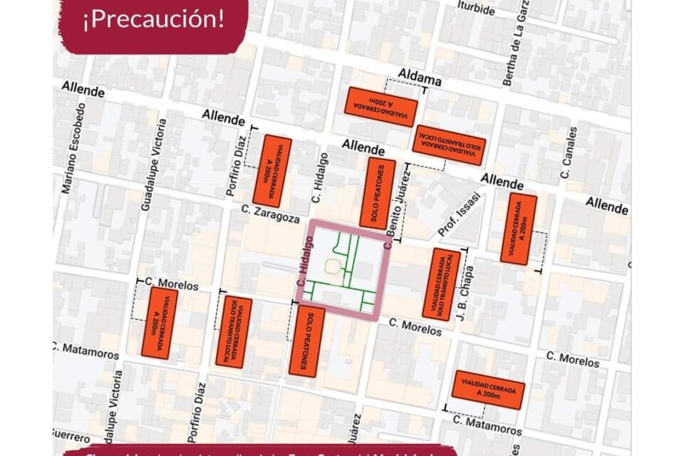 Por ello, se solicita manejar con precaución al llegar a las calles Morelos entre Hidalgo y Juárez, Hidalgo entre Morelos y Zaragoza, así como Juarez entre Morelos y Zaragoza.