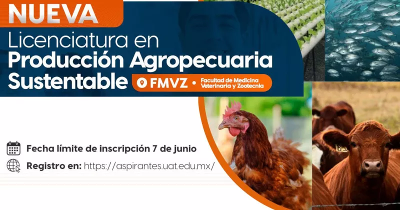 CIUDAD VICTORIA, TAMAULIPAS.- La Universidad Autónoma de Tamaulipas ofrece para el próximo ciclo escolar universitario 2024-3 (periodo de otoño) la nueva Licenciatura en Producción Agropecuaria Sustentable, que impartirá la Facultad de Medicina Veterinaria y Zootecnia Dr. Norberto Treviño Zapata (FMVZ UAT).