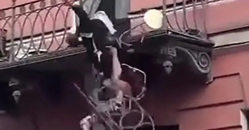 En un video se pude ver a la pareja cayendo de espaldas a la calle luego de que se recargaran de más en el barandal.