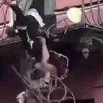 En un video se pude ver a la pareja cayendo de espaldas a la calle luego de que se recargaran de más en el barandal.