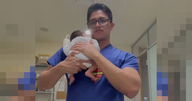 En el más reciente de ellos, se ve al pediatra atendiendo con mucho cariño y cuidado a uno de sus pacientes recién nacidos, ahí aparece el tiktoker dando palmaditas en la espalda para de este modo favorecer el descanso del bebé.