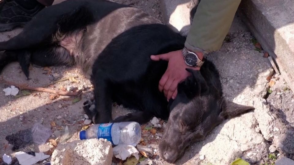 Perrita espera que rescaten a su dueña atrapada entre los escombros en Turquía
