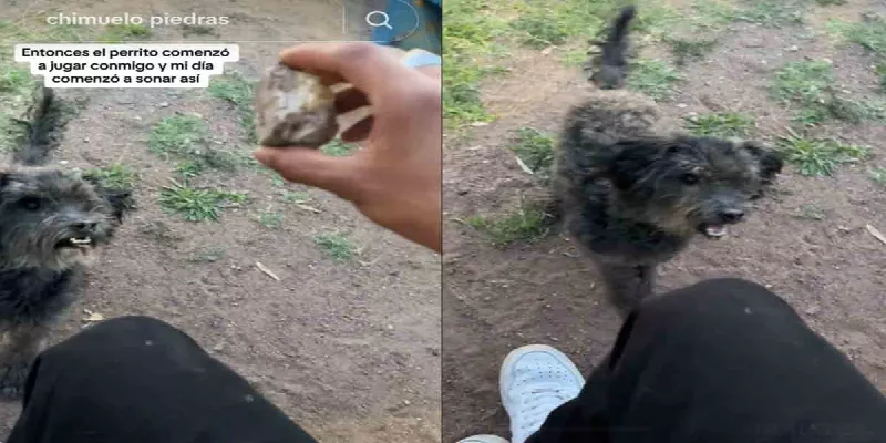 El video del peludito jugando fue compartido en Tiktok, en donde un joven, quien se encuentra en un parque, aparece mostrando la piedra, que después lanza a un perrito callejero muy mechudo.