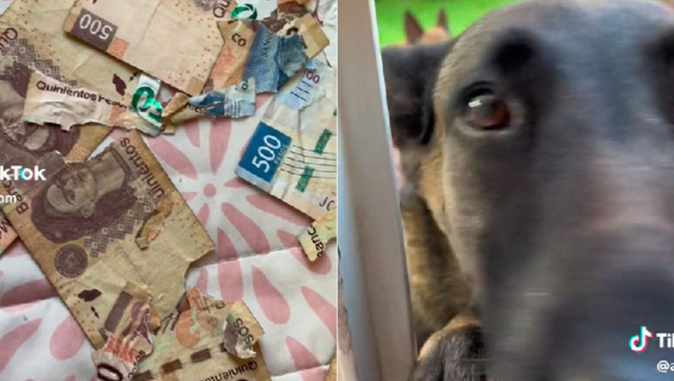 Un perrito se hizo viral en TikTok después de morder y destruir más de tres mil pesos en billetes.