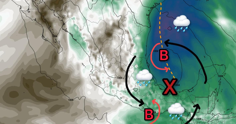 Con 30%, podría formarse un ciclón frente a costas de Tamaulipas, Veracruz y/o Tabasco este fin de semana, generando temporal lluvioso la semana entrante”, informó Meteorología México.