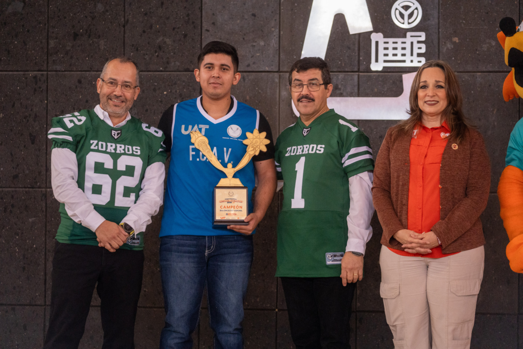 Posteriormente, encabezó la entrega de veintiún trofeos a los equipos de esta institución académica que obtuvieron los primeros lugares en el Torneo Interfacultades 2024, destacando en disciplinas como básquetbol, pádel, tenis, voleibol, futbol bardas, soccer, atletismo, baloncesto, tenis de mesa y tochito.