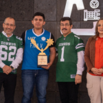 En la ceremonia, el rector hizo entrega simbólica de uniformes y hombreras a los integrantes del equipo de fútbol americano de esta Facultad, quienes, a su vez, entregaron al rector y a su esposa, el jersey representativo del equipo, en reconocimiento por su respaldo al deporte universitario.