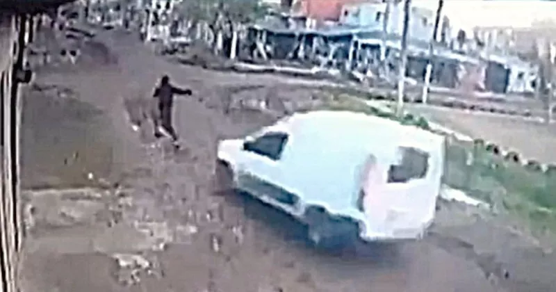 Continúa corriendo y disparando, hasta que la camioneta comienza a darle alcance y él cruza la vialidad con la intención de huir, momento en que la unidad lo embiste y tira al suelo. El vehículo casi derrapa al detenerse tras atropellar al ladrón.