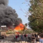 Videos publicados en las redes sociales muestran un feroz incendio del que se desprende una larga humareda negra.